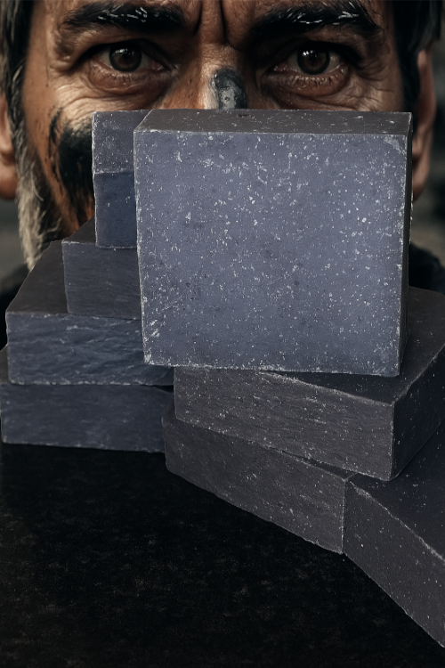 Ingredients: Saponified oils, including Coconut Oil, Canola Oil, Soybean Oil, Organic Shea Butter, Water, Sodium Hydroxide Lye, Olive Pomace Oil Sunflower Oil, a deep musk with Sandalwood and Patchouli, activated Charcoal.