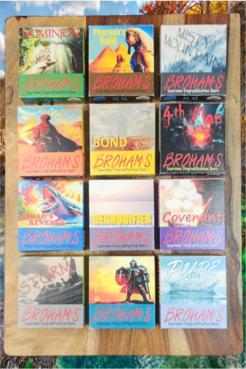 Broham's 12 Pack is one of each. Grab one for yourself. Grab one to use as an evangelism tool. While I can’t cover every major bible story in 12 soap boxes, I have covered a lot of ground. From eating the Forbidden Fruit to an invitation to eat of the Tree of Life.
